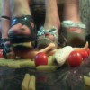 Descrizione: Lo schiavo viene calpestato e masturbato dai piedi della mistress